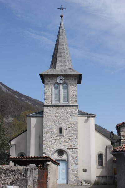 De la place, emprunter la D22 sur 100m en direction de Sost (sud), puis franchir à droite le pont sur l'Ourse. Monter par la première ruelle à gauche, elle se prolonge en chemin. Le suivre jusqu'au village d'Esbareich. À son entrée (croix en bois), prendre à droite, puis à gauche et rejoindre l'église en haut du village.